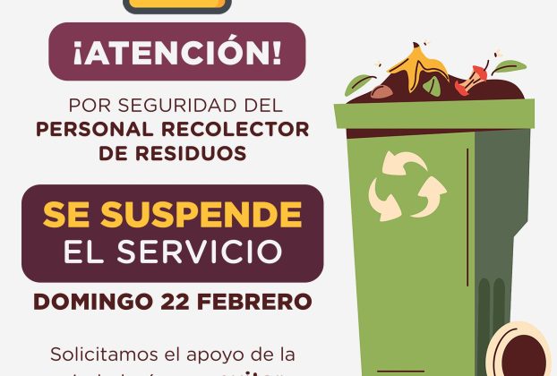 SE SUSPENDE EL SERVICIO DE RECOLECCIÓN DE RESIDUOS ESTE DOMINGO 22 DE FEBRERO