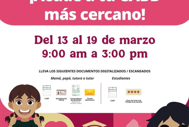Si aún no realizas el registro a la Beca de Apoyo para Útiles y Uniformes “Rita Cetina”, te invitamos a acudir al Centro de Atención de Becas para el Bienestar (CABB) más cercano, donde recibirás orientación y acompañamiento para completar tu trámite. Con el objetivo de facilitar este proceso a las familias, durante el fin […]