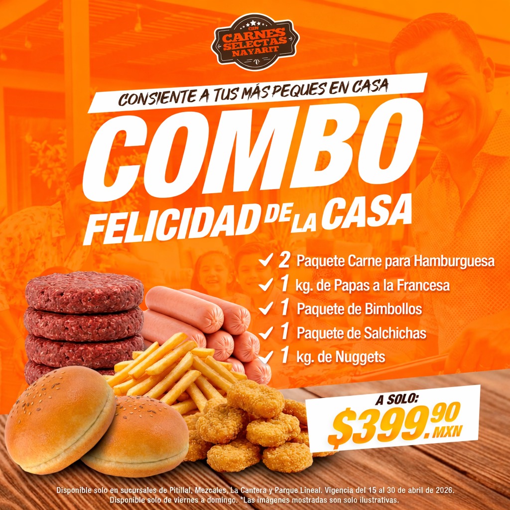 🎉🍔 Celebra en familia… y consiente a tus peques con el COMBO FELICIDAD DE LA CASA 🍟🥩 📍 Disponible solo en Mezcales, Pitillal, La Cantera y Parque Lineal📅 Del 15 al 30 de abril de 2026