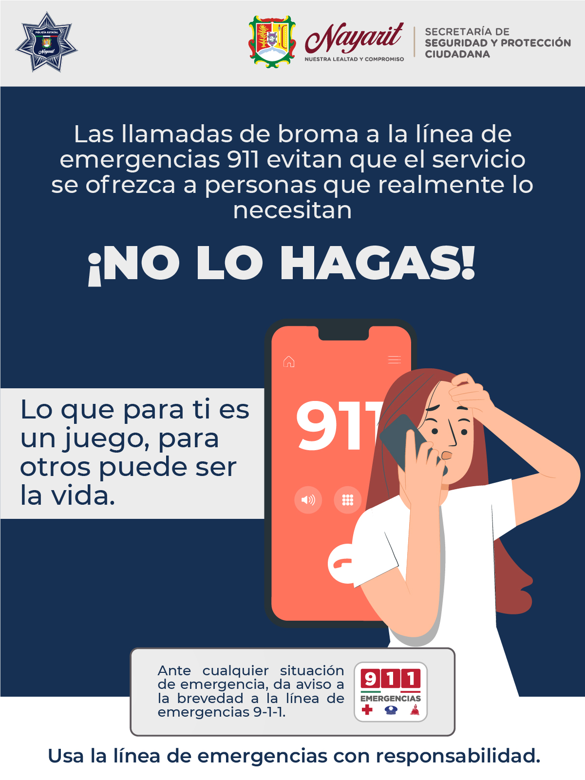 Si haces llamadas de broma al n煤mero de emergencia 9-1-1, podr铆a costarle la vida a una persona que realmente requiera auxilio.