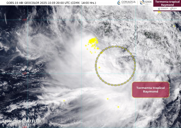 La tormenta tropical Raymond continúa su desplazamiento frente a la costa de Guerrero, su circulación y desprendimientos nubosos ocasionarán lluvias fuertes a puntuales torrenciales, fuertes rachas de viento y oleaje elevado en el occidente y sur de México.