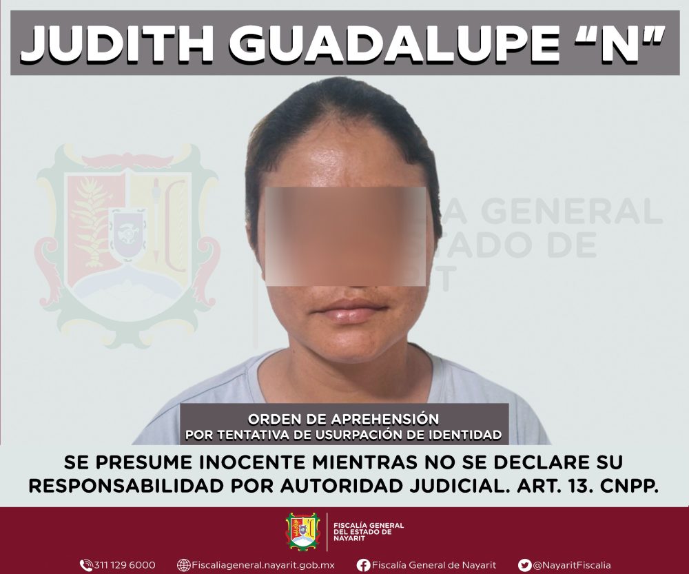 Elementos de la Agencia de Investigación Criminal de Nayarit ejecutaron una orden de aprehensión en el municipio de Tecuala contra Judith Guadalupe “N”, por su probable participación en hechos que para la ley configuran el delito de usurpación de identidad en grado de tentativa, cometido en agravio de la sociedad.