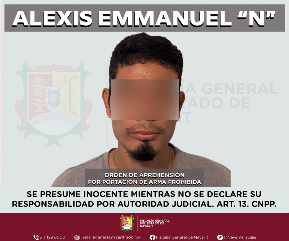 Elementos de la Agencia de Investigación Criminal de Nayarit ejecutaron una orden de aprehensión en la localidad San Vicente, municipio de Bahía de Banderas contra Alexis Emmanuel “N”, por su probable participación en hechos que para la ley configuran el delito de portación de arma prohibida en agravio de la sociedad.