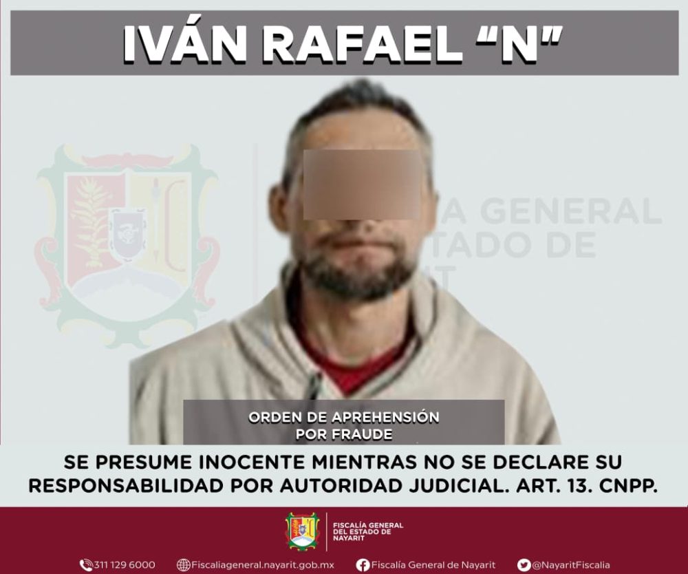 Elementos de la Agencia de Investigación Criminal de Nayarit ejecutaron una orden de aprehensión en el municipio de Ixtlán del Río contra Iván Rafael “N”, por su probable participación en hechos que para la ley configuran el delito de fraude, cometido en perjuicio de una persona de sexo masculino cuya identidad se reserva para proteger su privacidad e integridad.