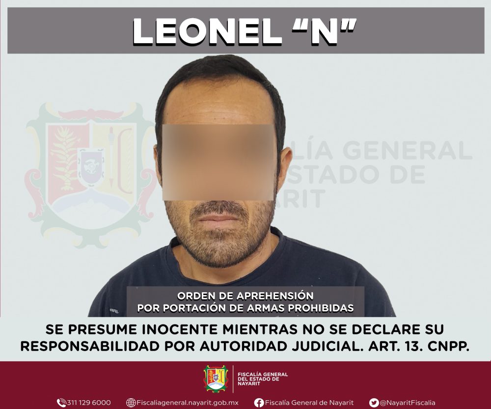 Elementos de la Agencia de Investigación Criminal de Nayarit ejecutaron una orden de aprehensión en el municipio de Xalisco contra Leonel “N”, por su probable participación en hechos que para la ley configuran el delito de armas prohibidas en su modalidad de portación, cometido en agravio de la sociedad.