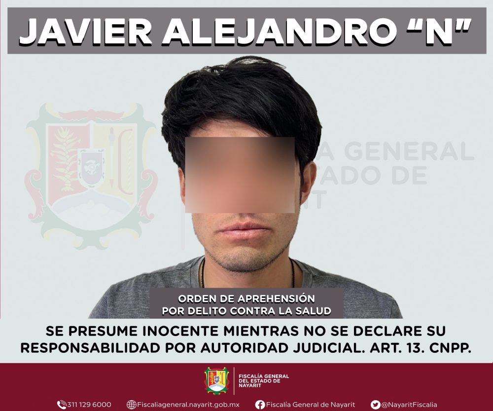 La Fiscalía General de Nayarit a través de la Agencia de Investigación Criminal ejecutó una orden de aprehensión en la ciudad de Tepic contra Javier Alejandro “N”, por su presumible participación en hechos que para la ley configuran el delito contra la salud en su modalidad de narcomenudeo -en su hipotesis de posesión de psicotrópicos-, ilícito cometido contra la sociedad.