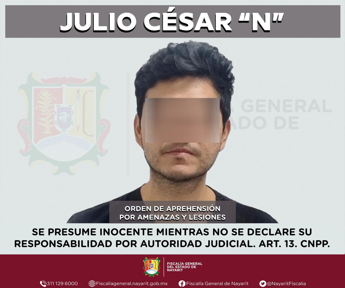 Elementos de la Agencia de Investigación Criminal de Nayarit cumplimentaron una orden de aprehensión en la ciudad de Tepic contra Julio César “N”, por su probable participación en hechos que la legislación vigente tipifica como delitos de amenazas y lesiones, cometidos contra una persona de sexo femenino cuya identidad se reserva por respeto a su derecho a la privacidad e integridad.