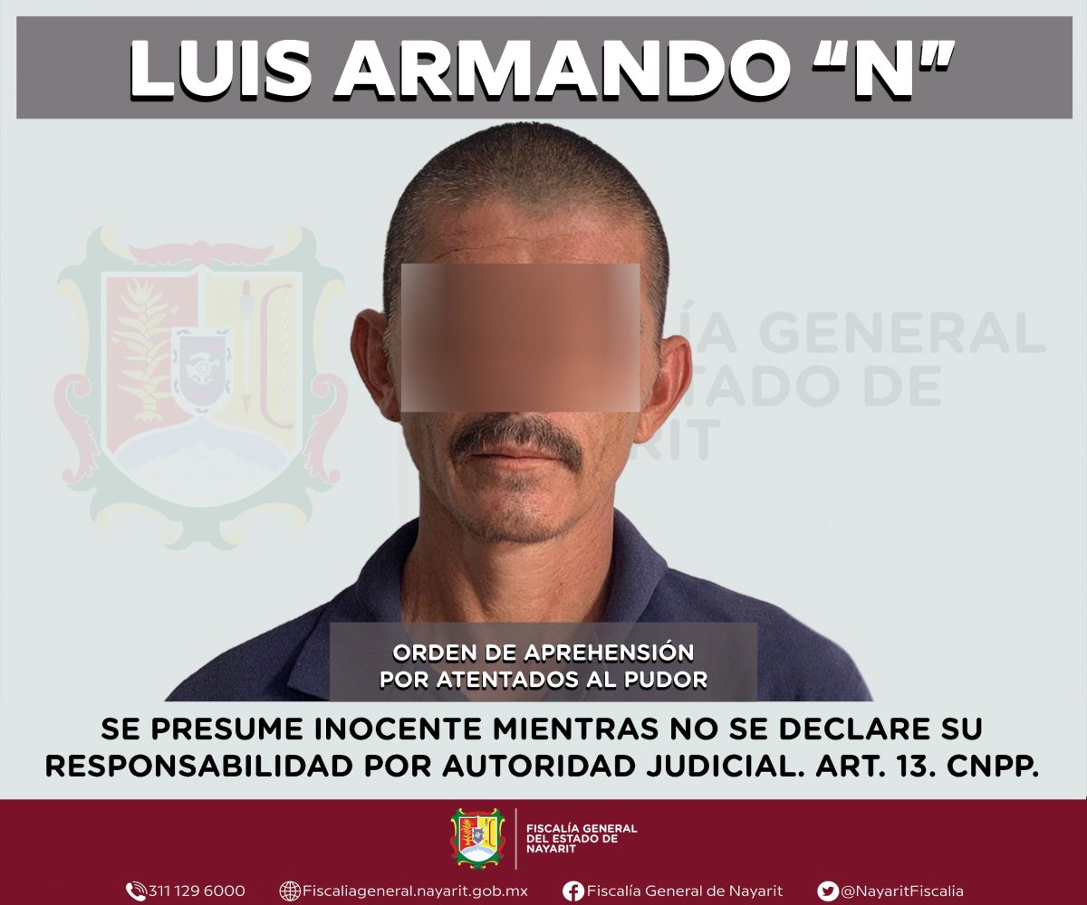 Elementos de la Agencia de Investigación Criminal de Nayarit cumplimentaron una orden de aprehensión en la ciudad de Tepic contra Luis Armando “N”, por su probable participación en hechos que la legislación vigente tipifica como delito de atentados al pudor, siendo la víctima una persona menor de edad cuya identidad se mantiene bajo reserva por respeto a su derecho a la privacidad e integridad.