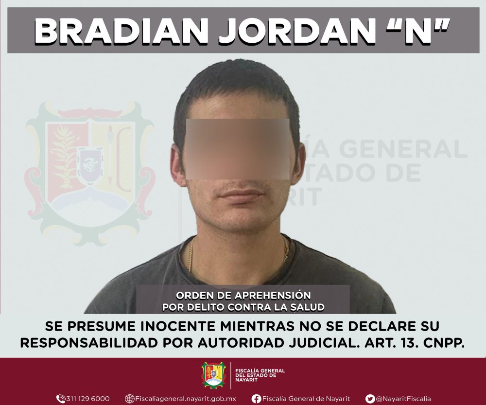 Elementos de la Agencia de Investigación Criminal de Nayarit ejecutaron una orden de aprehensión en la localidad El Ahuacate, municipio de Tepic contra Bradian Jordan “N”, por su probable participación en hechos que para la ley configuran el delito contra la salud en su modalidad de narcomenudeo -en su hipótesis de posesión de psicotrópicos-, cometido en agravio de la sociedad.