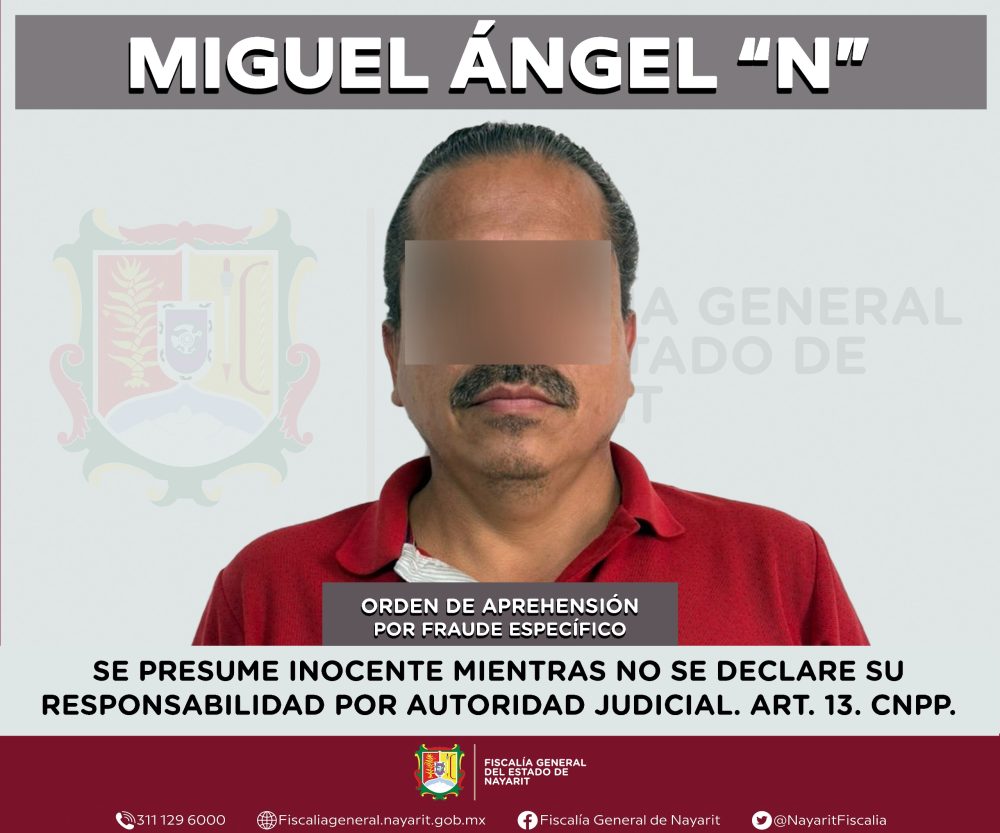 Elementos de la Agencia de Investigación Criminal de Nayarit ejecutaron una orden de aprehensión en la ciudad de Tepic contra Miguel Ángel “N”, por su probable participación en hechos que para la ley configuran el delito de fraude específico, cometido en perjuicio de una persona de sexo masculino cuya identidad se reserva para salvaguardar su privacidad e integridad.