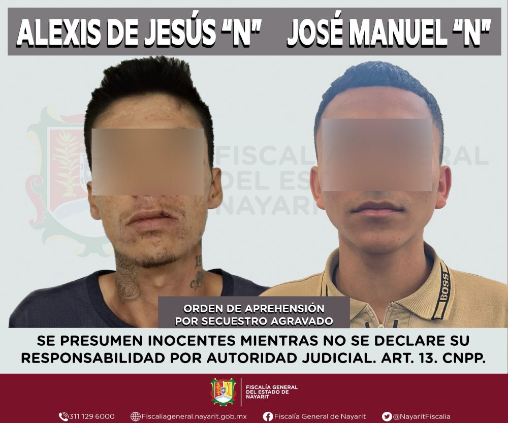 Elementos de la Agencia de Investigación Criminal de Nayarit ejecutaron una orden de aprehensión en la capital nayarita contra Alexis de Jesús “N” y Juan Manuel “N”, por su presuntiva participación en hechos que para la ley configuran el delito de secuestro agravado, cometido en contra de una persona de sexo masculino de quien se reserva la identidad para salvaguardar su privacidad e integridad.