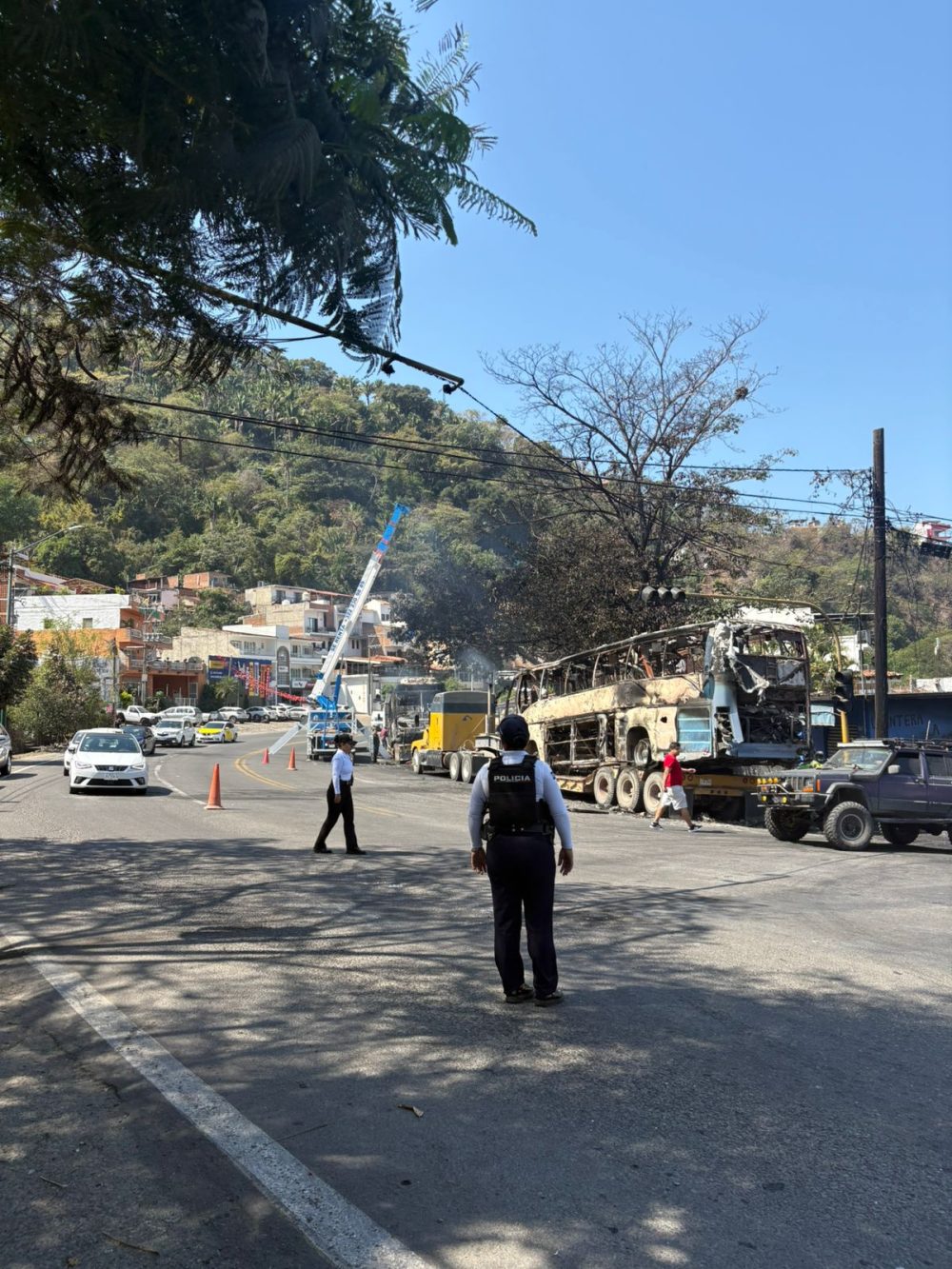 El Gobierno Municipal de Puerto Vallarta mantiene maniobras para retirar unidades de gran tamaño, como autobuses y camiones, en distintos puntos de la ciudad, luego de los hechos registrados el pasado domingo, derivados del operativo federal en Tapalpa, donde se utilizaron para generar bloqueos en vialidades del municipio.