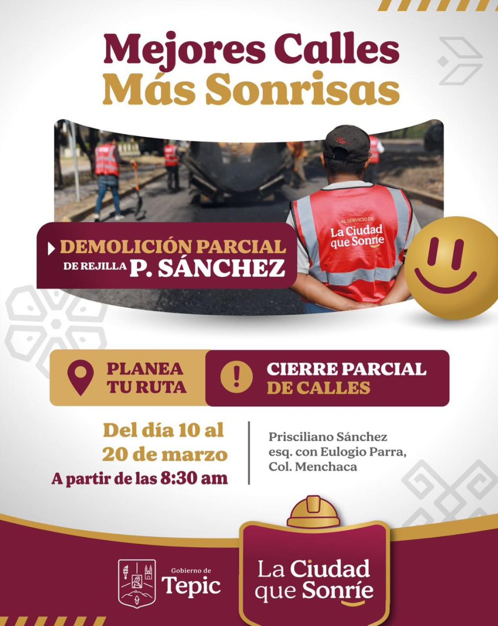 Este día iniciarán trabajos de demolición de una sección de rejilla en Av. P. Sánchez, esquina con Eulogio Parra, por lo que habrá cierre parcial de la vialidad.