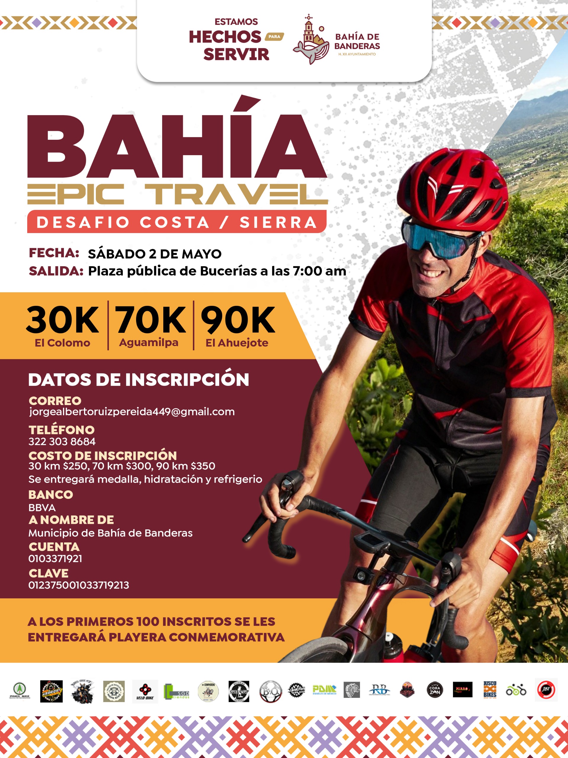La competencia se llevará a cabo el sábado 2 de mayo, con salida programada a las 7:00 de la mañana desde la plaza pública de Bucerías. El reto contempla tres distancias: 30, 70 y 90 kilómetros, diseñadas para distintos niveles de exigencia, desde recorridos intermedios hasta trayectos de alta demanda física en rutas que combinan costa y sierra.
