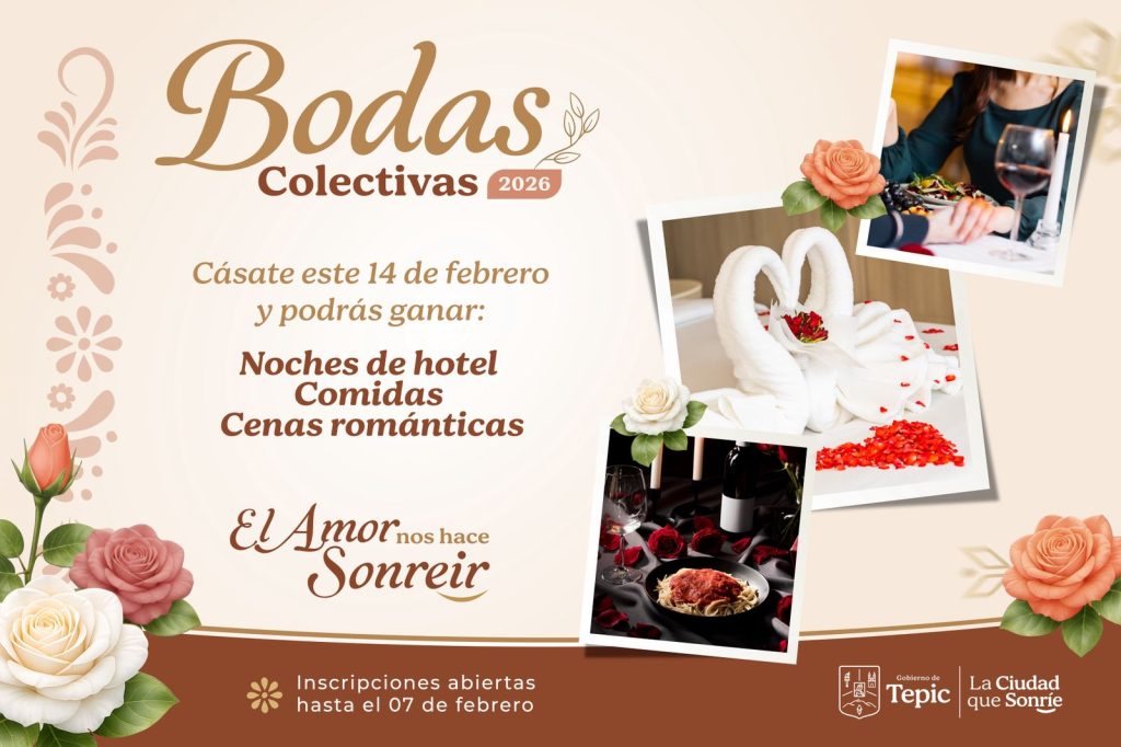 Las Bodas Colectivas 2026 traerán premios y cortesías para las parejas participantes, como noches de hotel, comidas y cenas románticas.