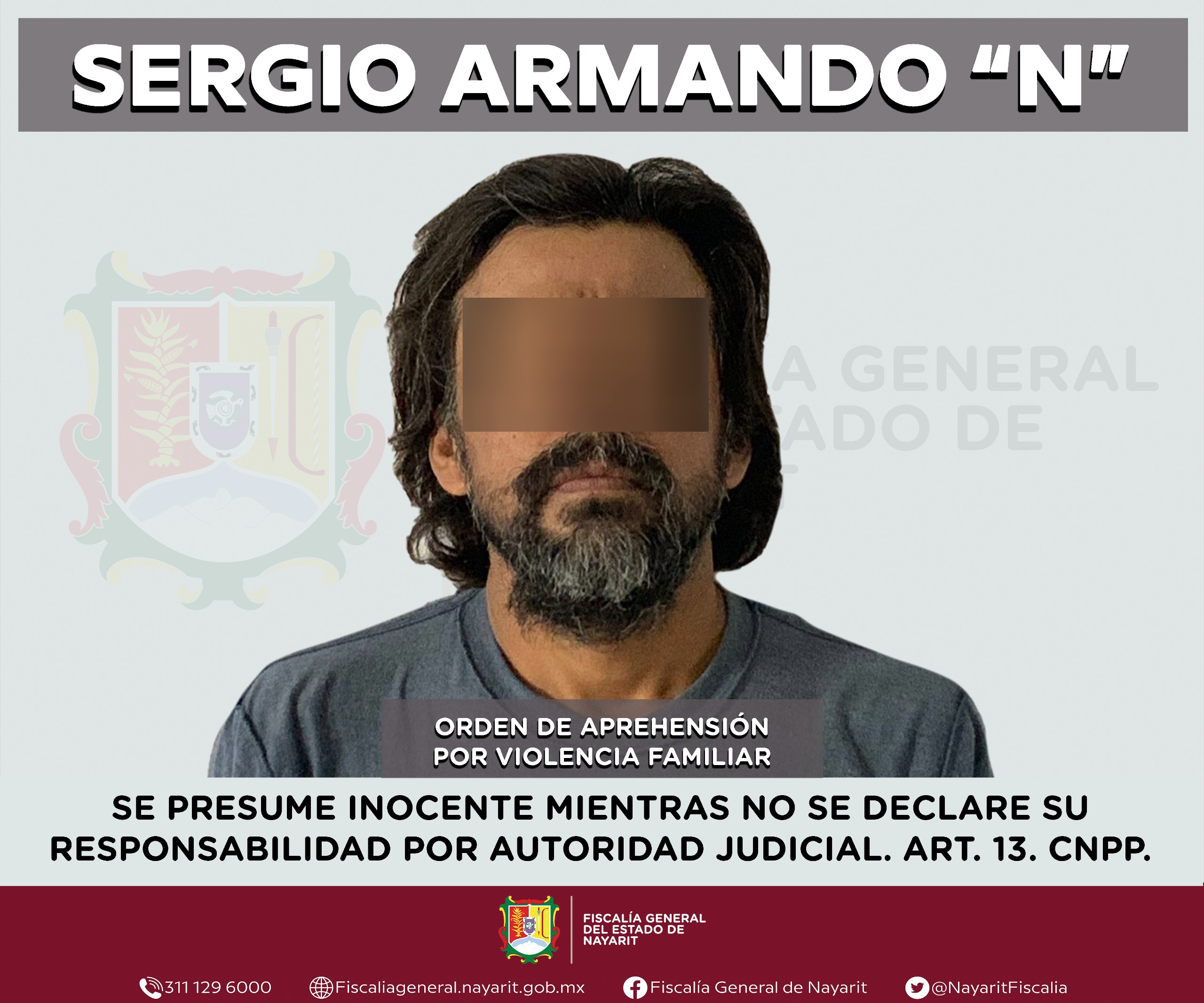 La Fiscalía General del estado de Nayarit informa que elementos de la Agencia de Investigación Criminal ejecutaron una orden de aprehensión en la ciudad de Tepic contra Sergio Armando “N”, por su probable participación en hechos que para la ley configuran el delito de violencia familiar, cometido en agravio de una persona de sexo femenino y un adolescente, cuyas identidades se reservan por respeto a su derecho a la privacidad e integridad.