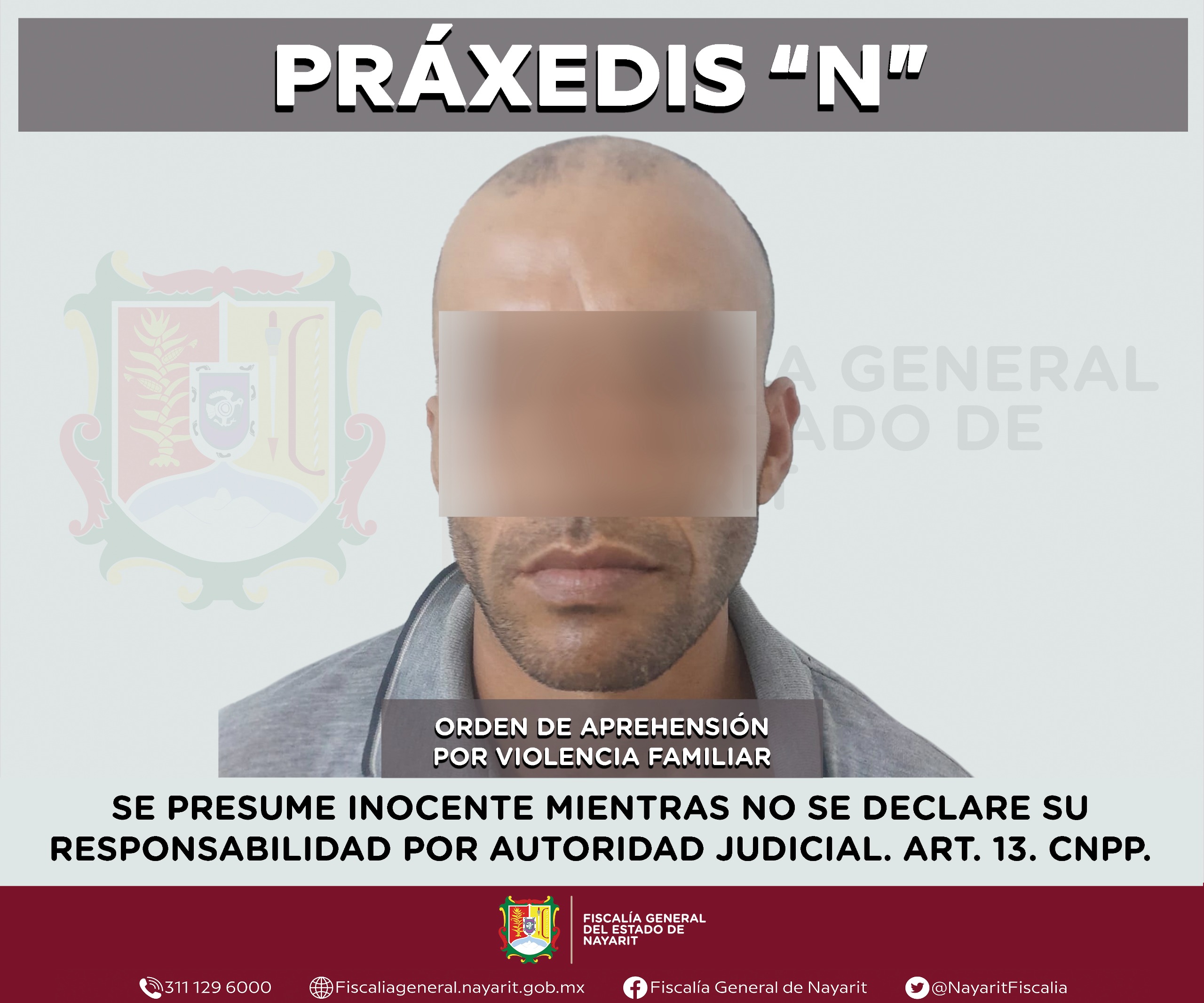 La Fiscalía General del estado de Nayarit informa que elementos de la Agencia de Investigación Criminal ejecutaron una orden de aprehensión en la localidad Zacualpan, municipio de Compostela contra Práxedis “N”, por su probable participación en hechos que la legislación vigente tipifica como delito de violencia familiar, cometido contra una persona de sexo femenino cuya identidad se reserva por respeto a su derecho a la privacidad e integridad.
