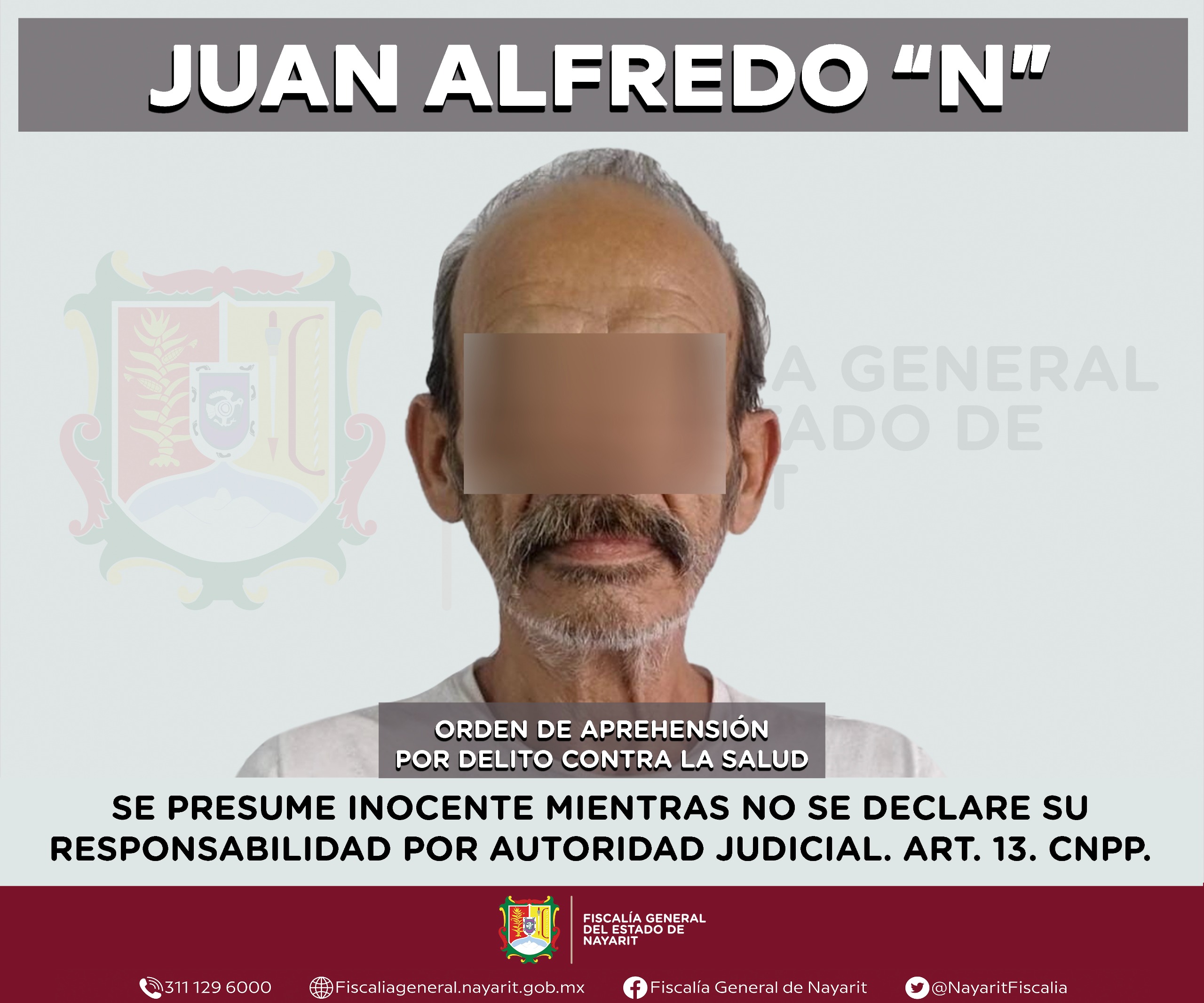 La Fiscalía General del estado de Nayarit informa que elementos de la Agencia de Investigación Criminal ejecutaron una orden de aprehensión en la ciudad de Tepic contra Juan Alfredo “N”, por su probable participación en hechos que para la ley configuran el delito contra la salud en su modalidad de narcomenudeo -en su hipótesis de posesión de psicotrópicos-, cometido contra la sociedad.