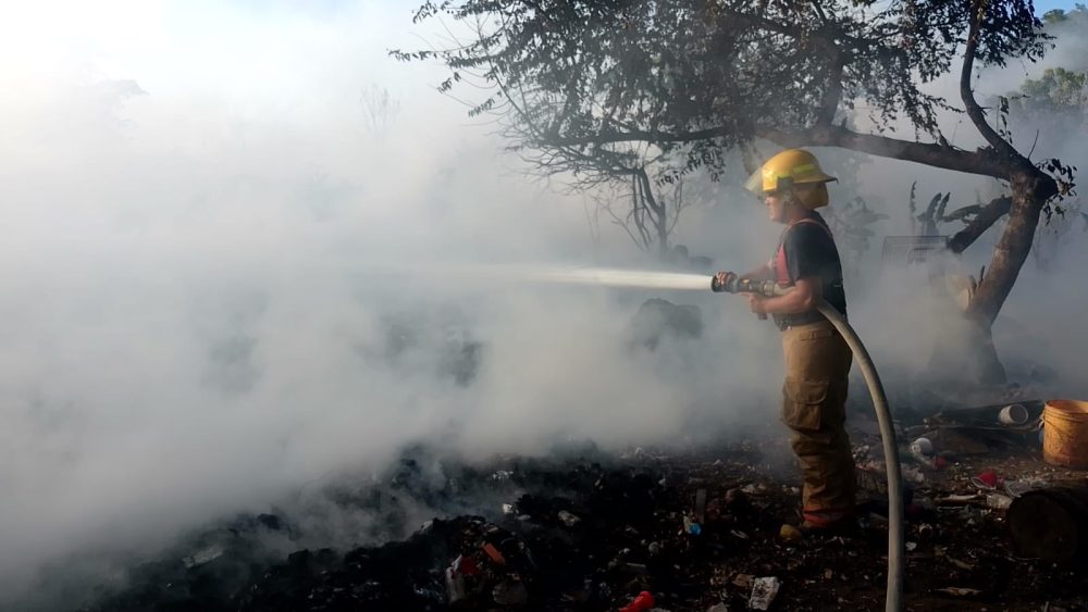 👩‍🚒Cuando los agentes arribaron al lugar, se percataron de la presencia de las llamas que se propagaban hacia el plantel y hacía unas viviendas aledañas, por lo que se extinguieron las llamas mediante el uso de una motobomba.