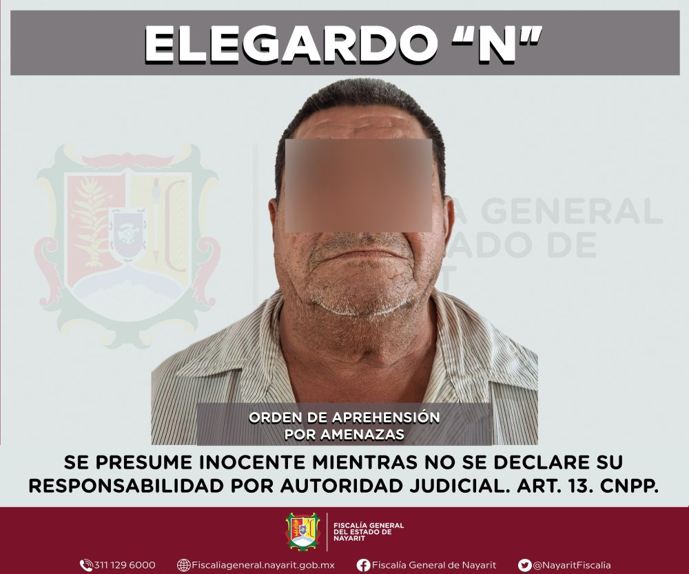 La Fiscalía General de Nayarit a través de la Agencia de Investigación Criminal ejecutó una orden de aprehensión en el municipio de Bahía de Banderas contra Elegardo “N”, por su presunta participación en hechos que según apreciación de la ley encuadran el delito de amenazas, cometido contra una persona de sexo masculino cuya identidad se reserva para proteger su privacidad e integridad.