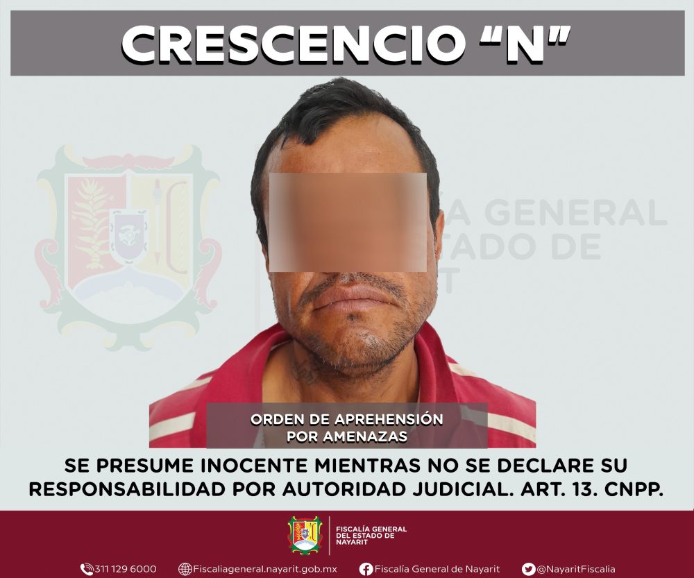 Elementos de la Agencia de Investigación Criminal de Nayarit ejecutaron dos órdenes de aprehensión en la localidad Las Varas, municipio de Compostela contra Crescencio “N”, por su probable participación en hechos que la legislación vigente tipifica como delito de amenazas.