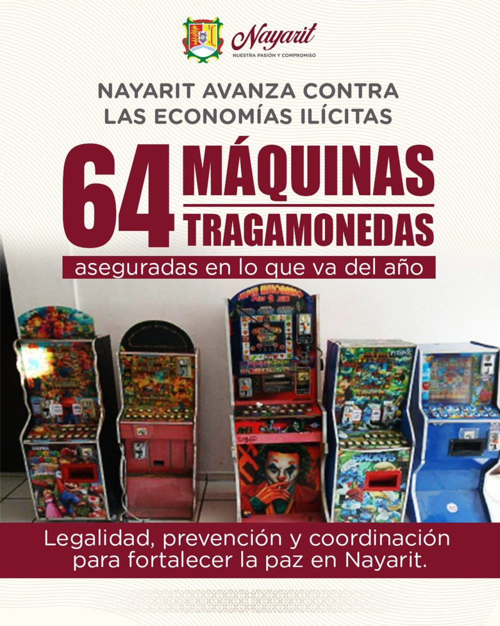 Continue ReadingEl Gobierno del Estado de Nayarit avanza contra las actividades ilícitas con acciones firmes y coordinadas que priorizan la protección de las familias. En lo que va del año, se han asegurado 64 máquinas tragamonedas como parte de los operativos de prevención y legalidad. Desde la Mesa Estatal para la Construcción de la Paz y […]