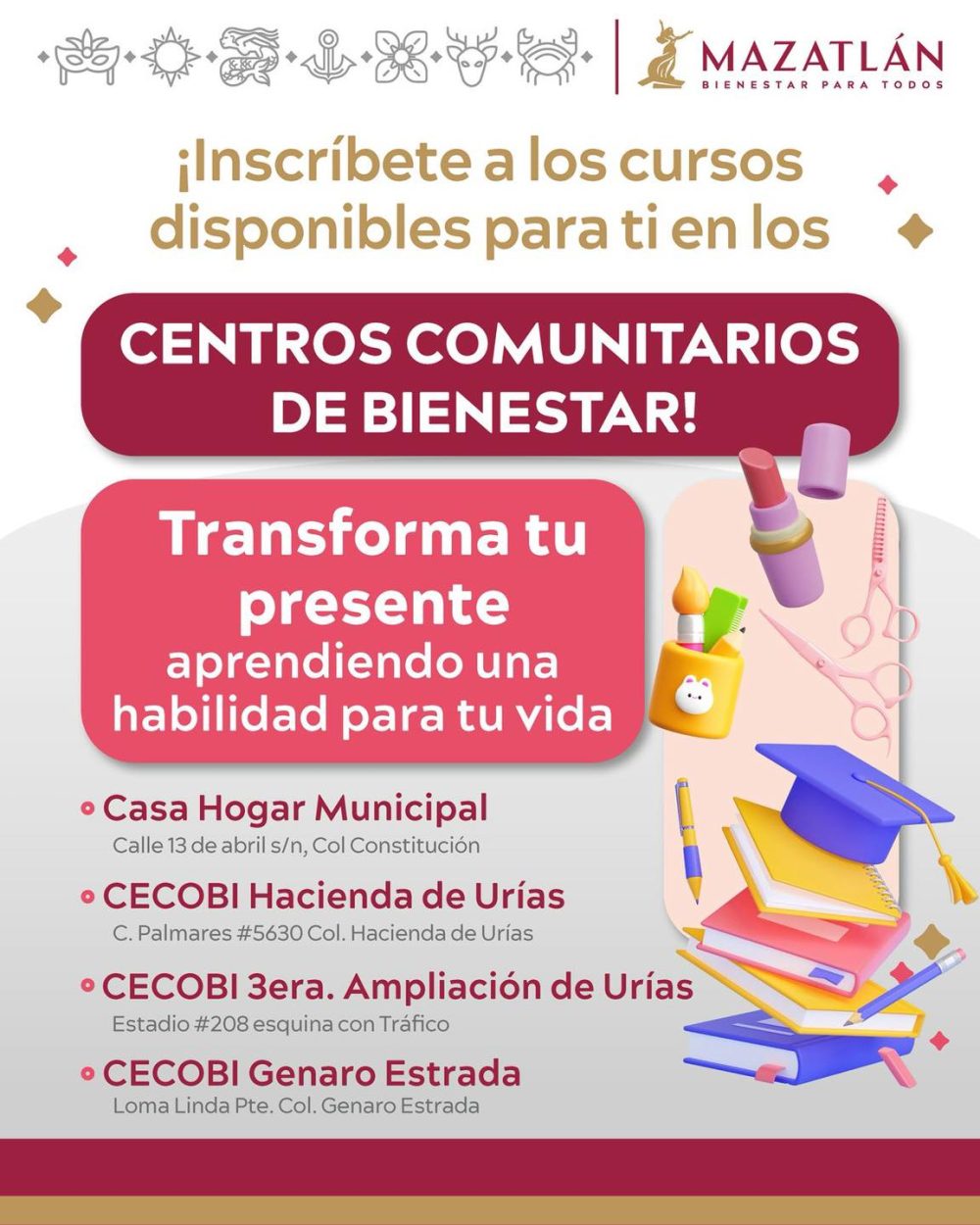 Continue ReadingA partir de este lunes 12 de enero, el Gobierno de Mazatlán iniciará 52 cursos gratuitos en CECOBIS y Casa Hogar Municipal Informes e inscripciones: • CECOBI Hacienda de Urías: 669 108 33 53 • CECOBI Tercera Ampliación de Urías: 669 325 57 16 / 669 145 60 42 • CECOBI Genaro Estrada: 669 688 […]