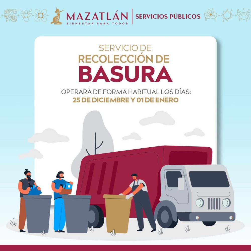 Continue ReadingEl servicio de recolección de basura se brindará de manera habitual durante los días: 25 de diciembre 01 de enero Se invita a la población a sacar sus residuos en los horarios establecidos, para mantener la ciudad limpia y ordenada.