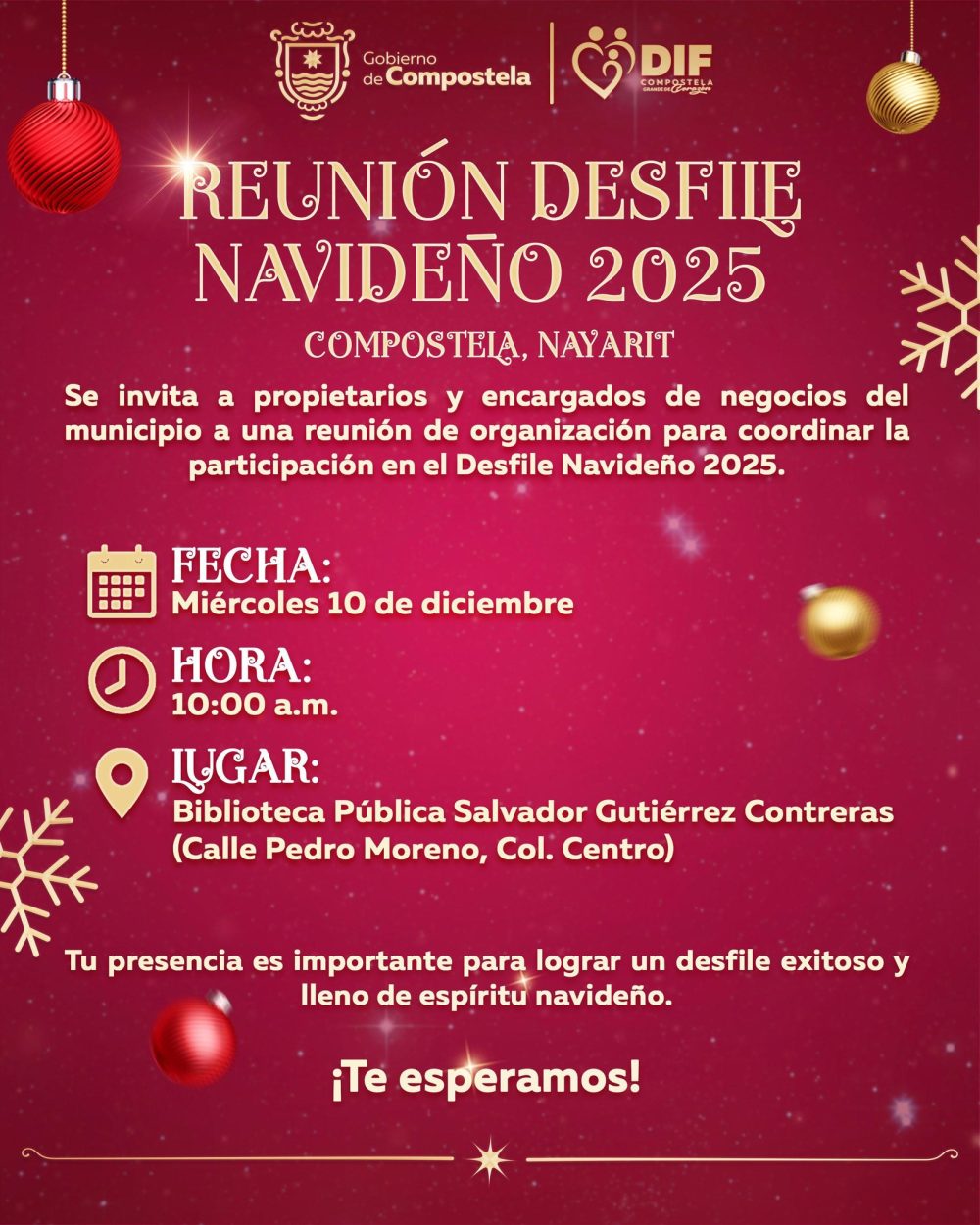 Continue Reading¡Preparemos juntos un desfile navideño a la altura de nuestra GRANDEZA! Invitamos a propietarias, propietarios y encargados de negocios a sumarse a esta coordinación para construir juntos una celebración que llene de calidez las calles de Compostela. #GobiernoEnGRANDE