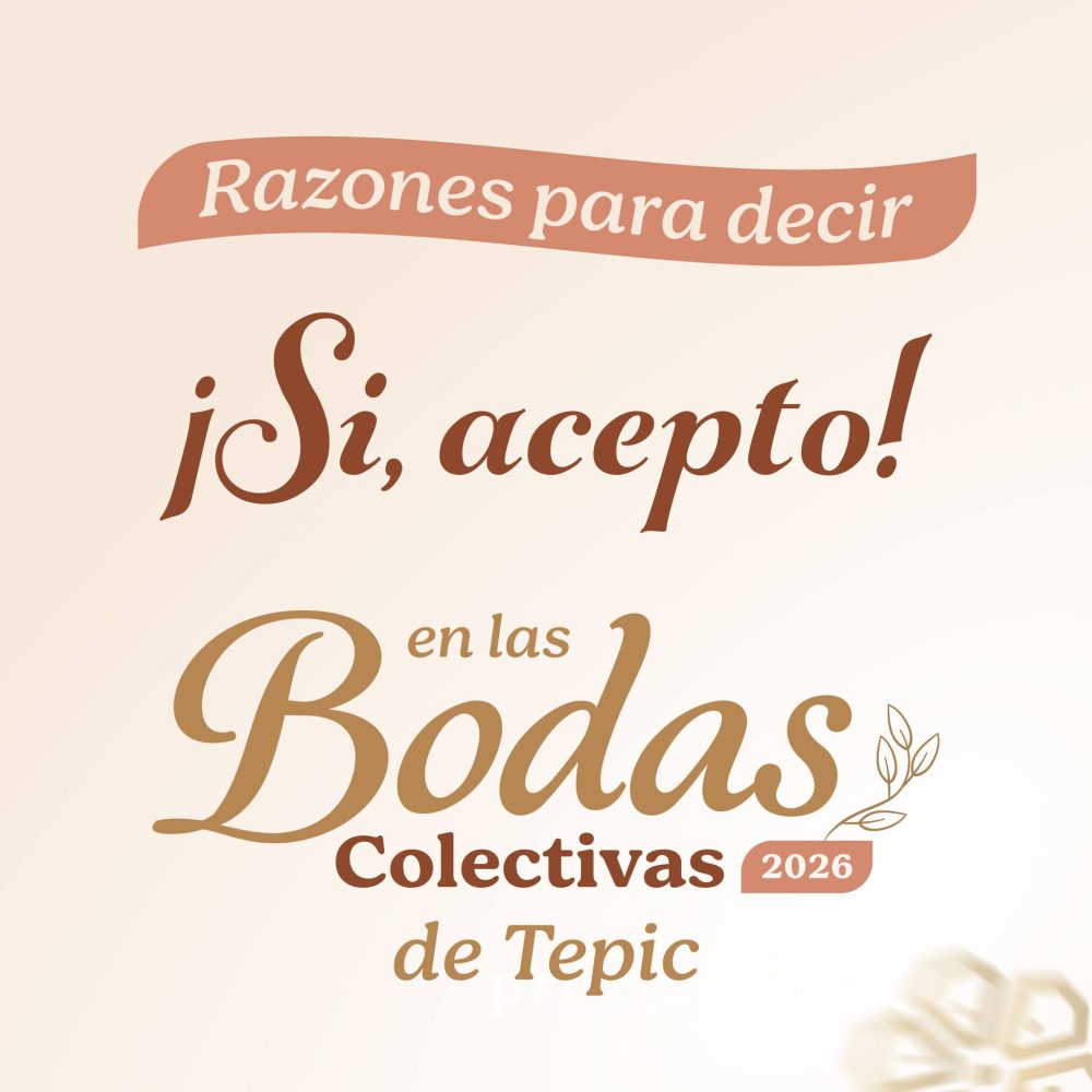Razones para dar el “Sí, acepto” en las Bodas Colectivas. Formalizar una unión es una decisión importante, por ello el Gobierno de Tepic invita a las parejas a vivir este momento especial el próximo 14 de febrero, en una ceremonia pensada para acompañar su compromiso y el inicio de una nueva etapa. Porque el amor […]