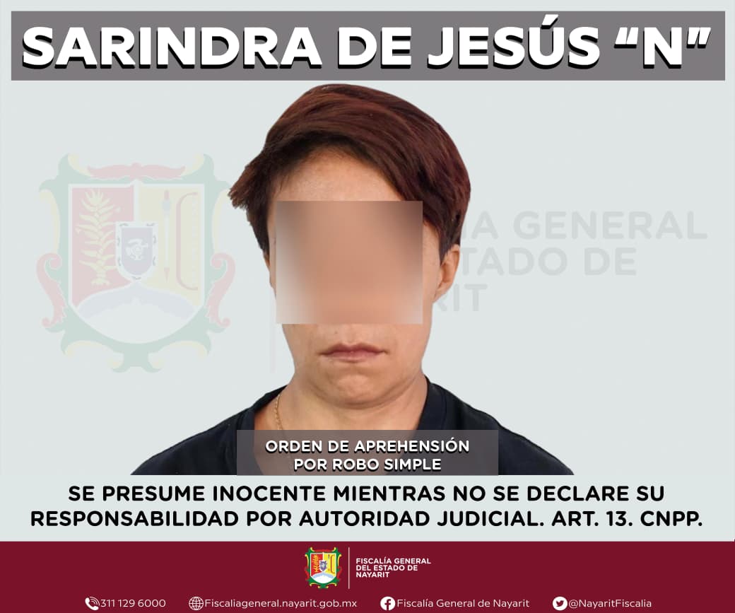La Fiscalía General del estado de Nayarit informa que elementos de la Agencia de Investigación Criminal ejecutaron una orden de aprehensión en la ciudad de Tepic contra Sarindra de Jesús “N”, por su probable participación en hechos que la ley tipifica como delito de robo simple, cometido en perjuicio de una mujer cuya identidad se […]
