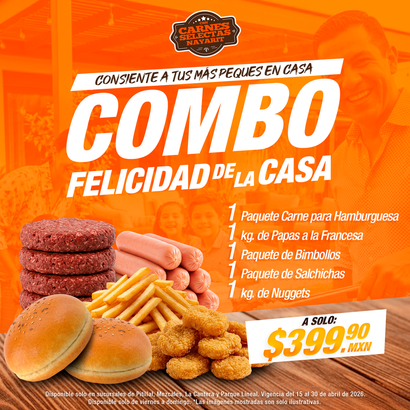 🎉🍔 Celebra en familia… y consiente a tus peques con el COMBO FELICIDAD DE LA CASA 🍟🥩