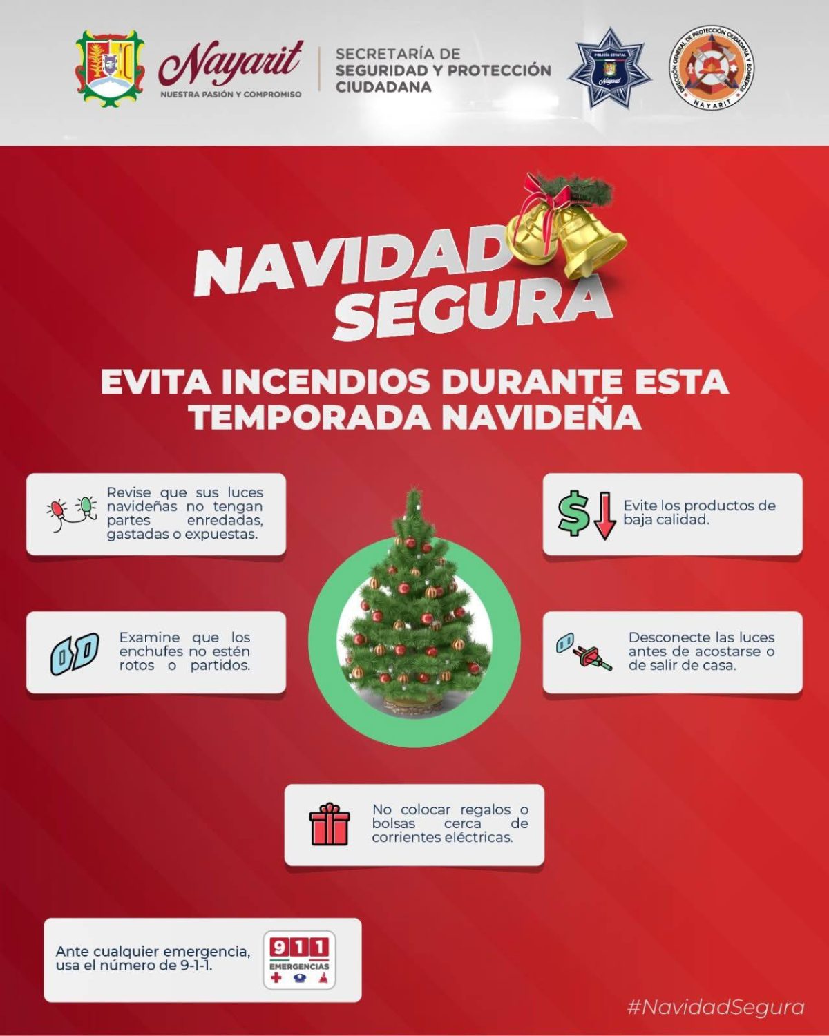 La Secretaría de Seguridad y Protección Ciudadana te comparte las siguientes medidas de prevención para evitar accidentes en esta temporada navideña.
