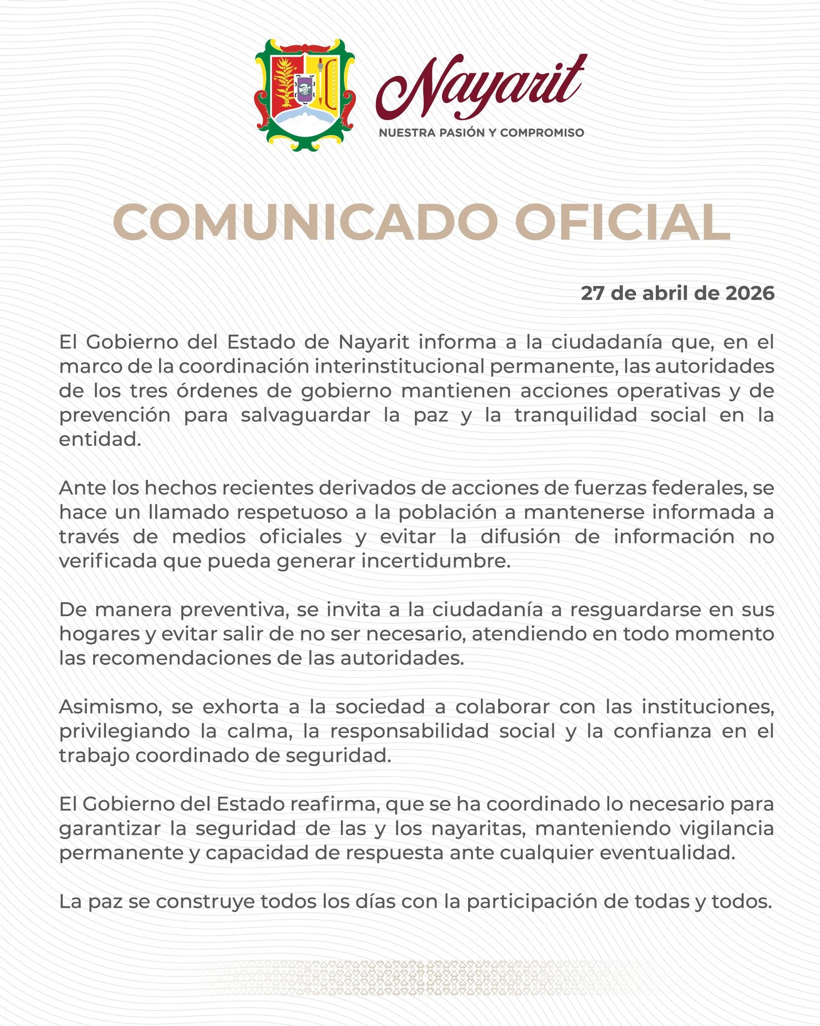 Comunicado Gobierno del Estado de Nayarit Gobierno de Nayarit abril 27, 2026abril 27, 2026RedacciónDeja un comentario en Comunicado Gobierno del Estado de Nayarit