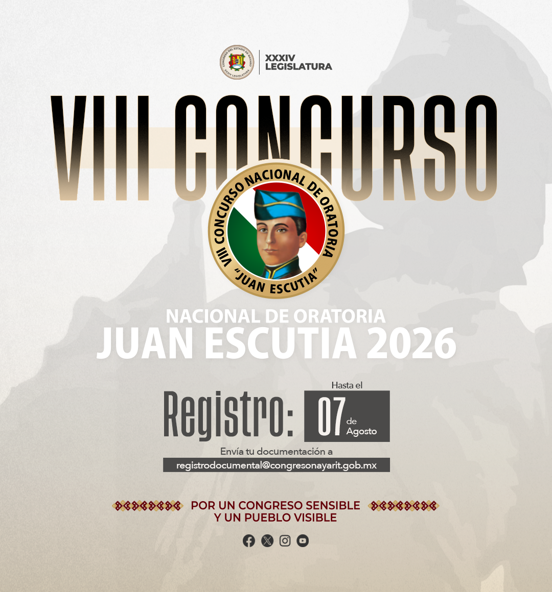 Concurso Juan Escutia 2026 Congreso de Nayarit abril 22, 2026Gcn NoticiasDeja un comentario en Concurso Juan Escutia 2026 馃帳 No importa de d贸nde seas 馃寧Participa y representa a tu estado馃搫 Bases: www.congresonayarit.gob.mx