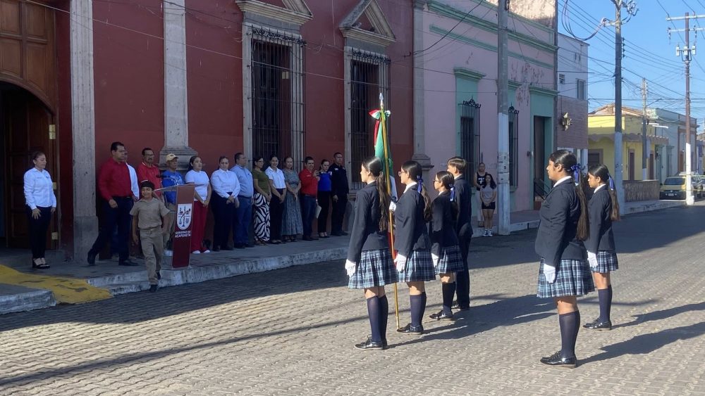 La ceremonia, realizada en la explanada de la presidencia municipal, estuvo coordinado por la dirección de Educación que dirige la Mtra. Yrma Rivera, en colaboración con la Escuela Secundaria General “Leyes de Reforma”, turnos matutino y vespertino, cuyo director es el Prof. Ricardo González.
