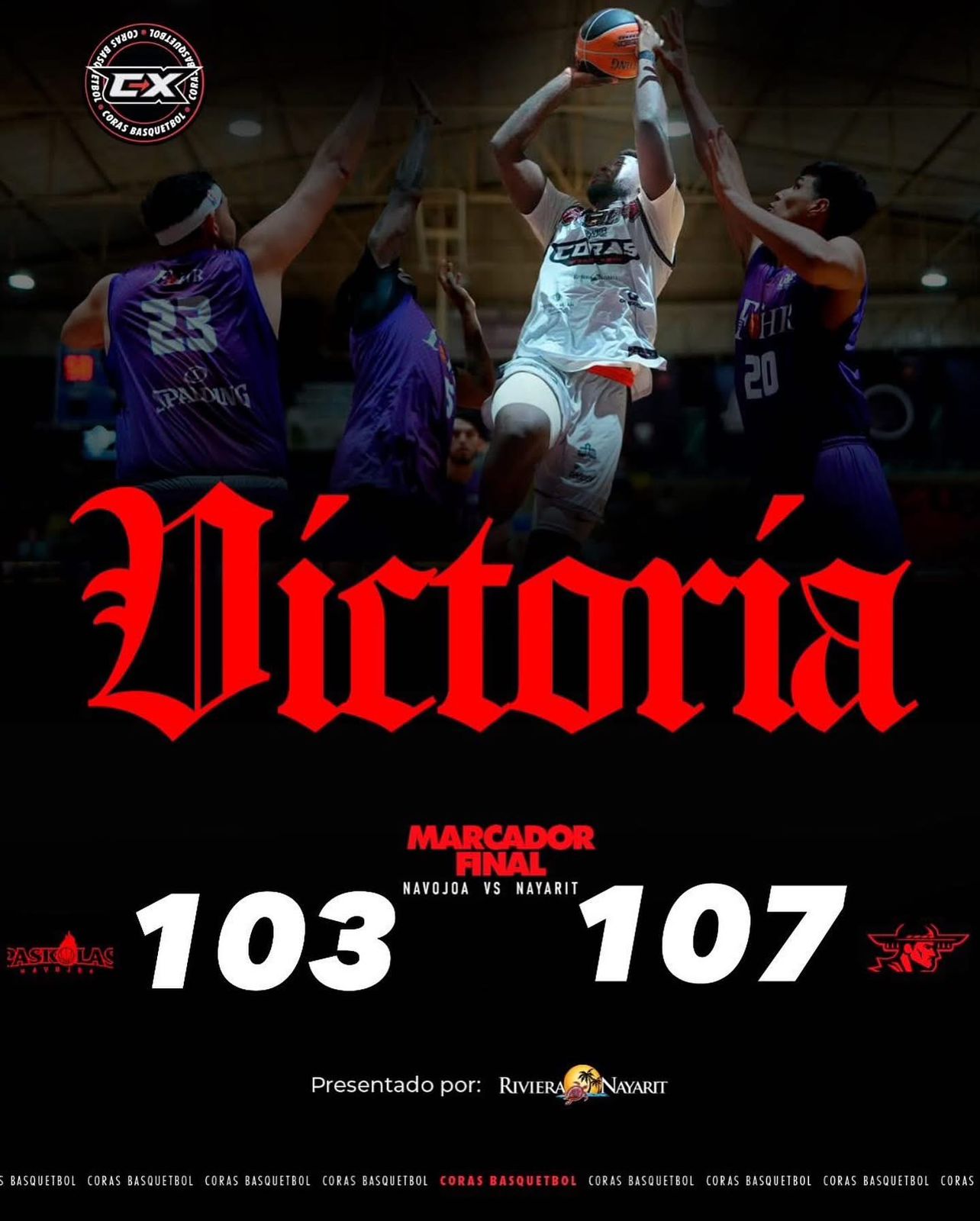Coras Básquetbol se repuso rápidamente de la derrota anterior y consiguió una importante victoria como visitante al derrotar 107-103 a Paskolas de Navojoa, en un duelo intenso correspondiente a la gira por tierras sonorenses de la Liga de Baloncesto del Pacífico (LBP).