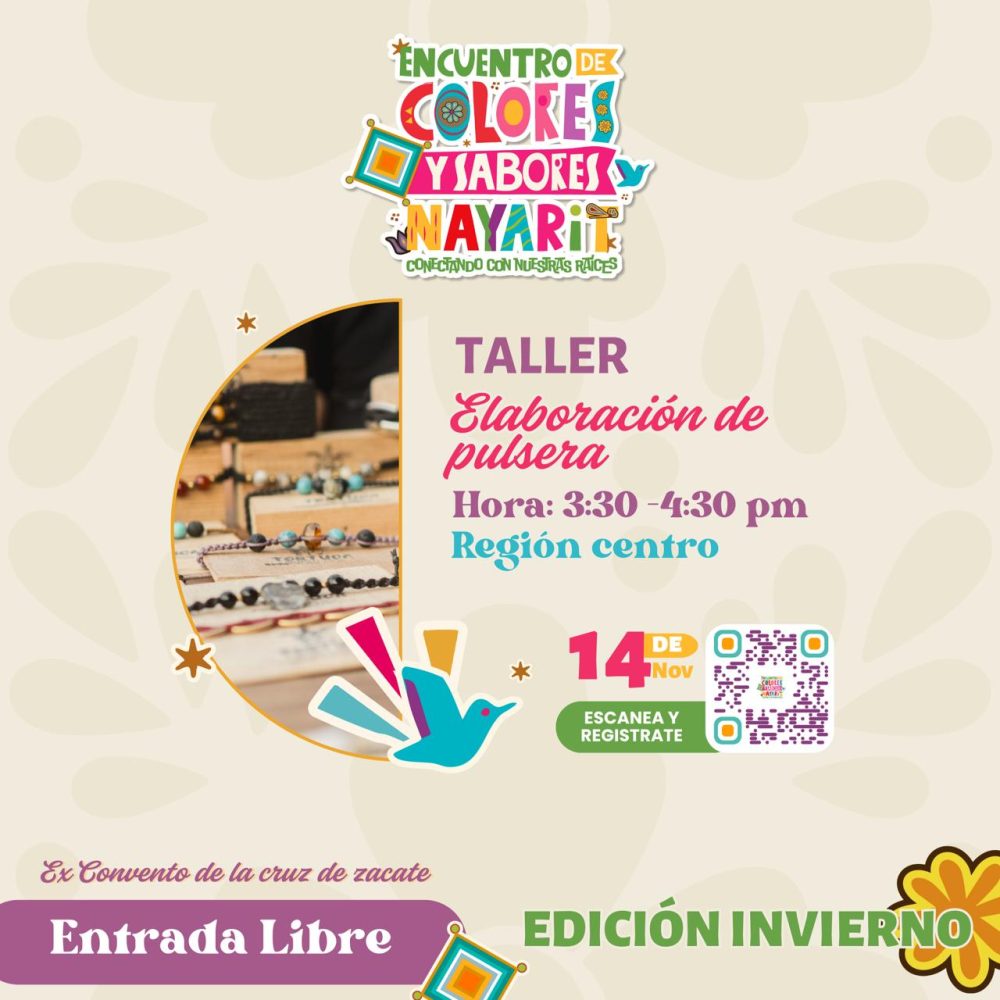 Este 14 de noviembre te invitamos al Taller de Elaboración de Pulsera, una actividad que combina creatividad, cultura y tradición nayarita.