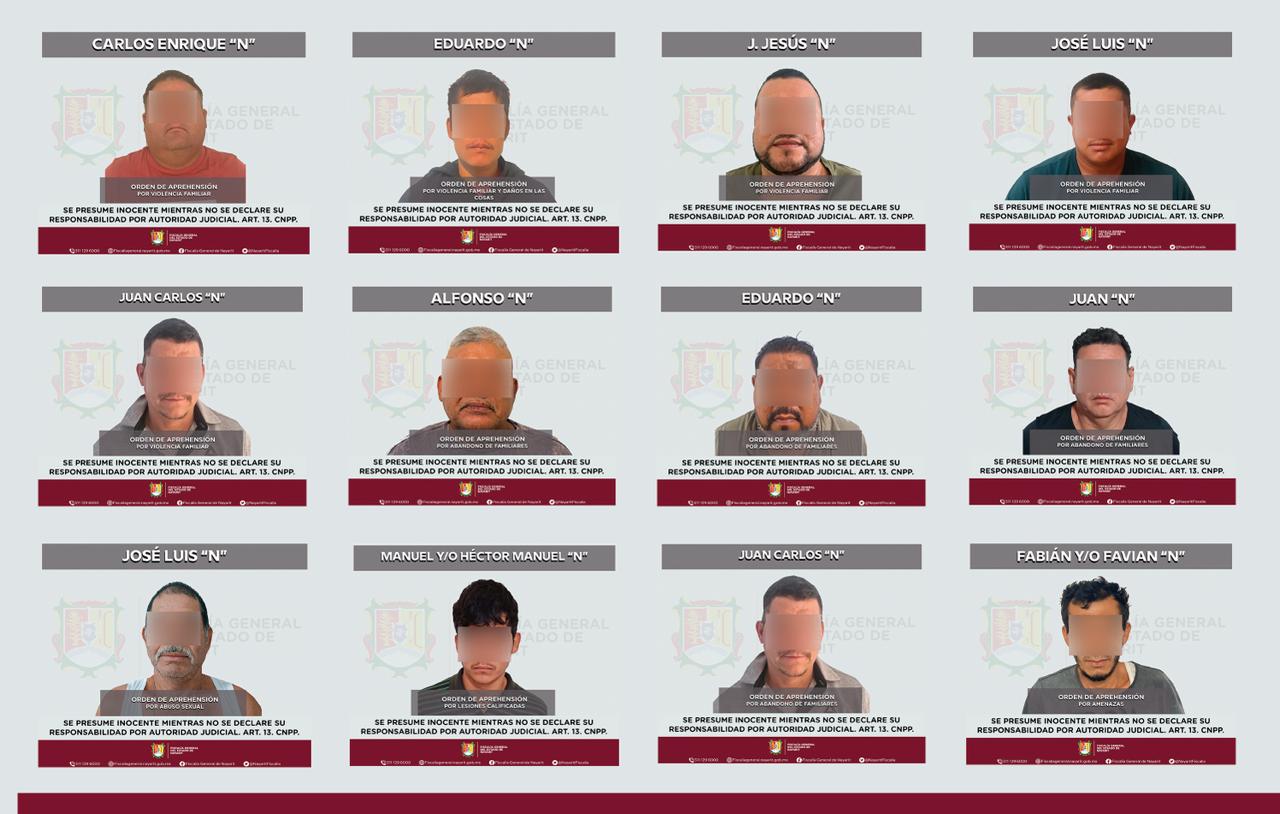 La Fiscalía General del estado de Nayarit informa que, en continuidad con las acciones permanentes para combatir la violencia contra niñas, adolescentes y mujeres, el día 30 de noviembre se ejecutaron 12 órdenes de aprehensión correspondientes a diversas conductas delictivas.