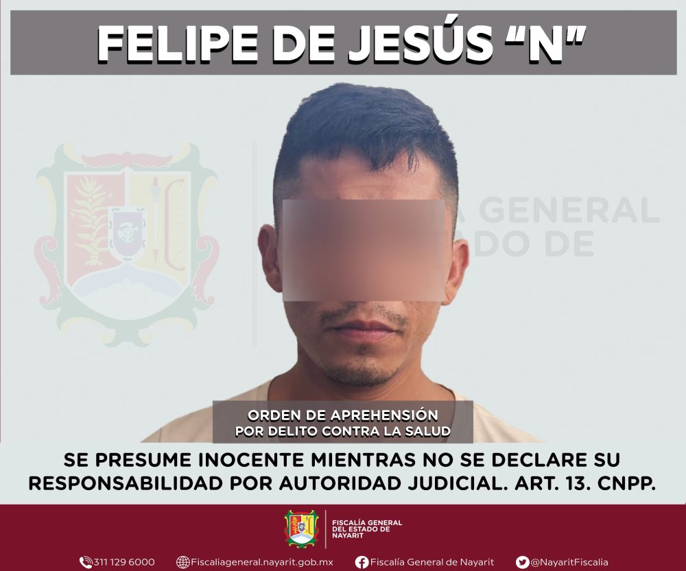 Elementos de la Agencia de Investigación Criminal de Nayarit ejecutaron una orden de aprehensión en la capital nayarita contra Felipe de Jesús “N”, por su probable participación en hechos que para la ley configuran el delito contra la salud en su modalidad de narcomenudeo -en su hipótesis de posesión de psicotrópicos-, cometido en agravio de la sociedad.