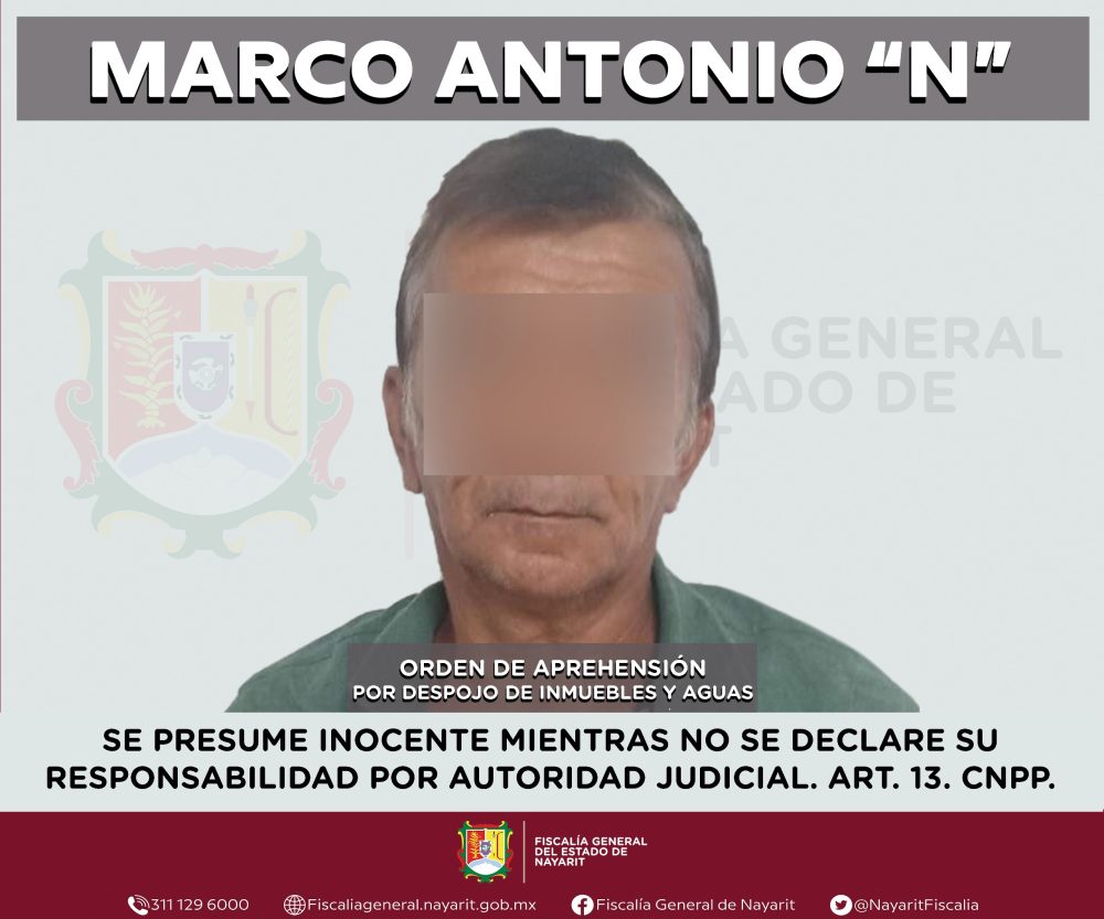 Elementos de la Agencia de Investigación Criminal de Nayarit ejecutaron una orden de aprehensión en la localidad Aticama, municipio de San Blas contra Marco Antonio “N”, por su probable participación en hechos que para la ley configuran el delito de despojo de inmuebles y aguas, cometido en contra de una persona de sexo femenino, víctima de la cual se reserva la identidad para salvaguardar su privacidad e integridad.