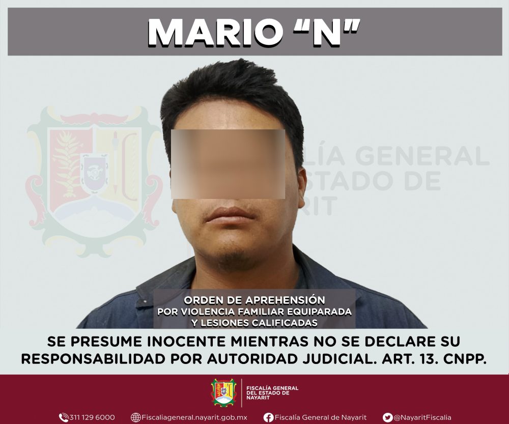 La Fiscalía General del estado de Nayarit informa que elementos de la Agencia de Investigación Criminal ejecutaron una orden de aprehensión en el municipio de Xalisco contra Mario “N”, por su probable participación en hechos que la ley tipifica como delitos de violencia familiar equiparada y lesiones calificadas.