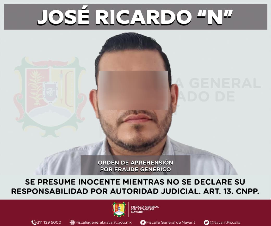 La Fiscalía General del estado de Nayarit informa que elementos de la Agencia de Investigación Criminal ejecutaron una orden de aprehensión en la ciudad de Tepic contra José Ricardo “N”, por su probable participación en hechos que la ley tipifica como delito de fraude genérico, cometido en agravio de una mujer cuya identidad se mantiene bajo reserva por respeto a su derecho a la privacidad e integridad.