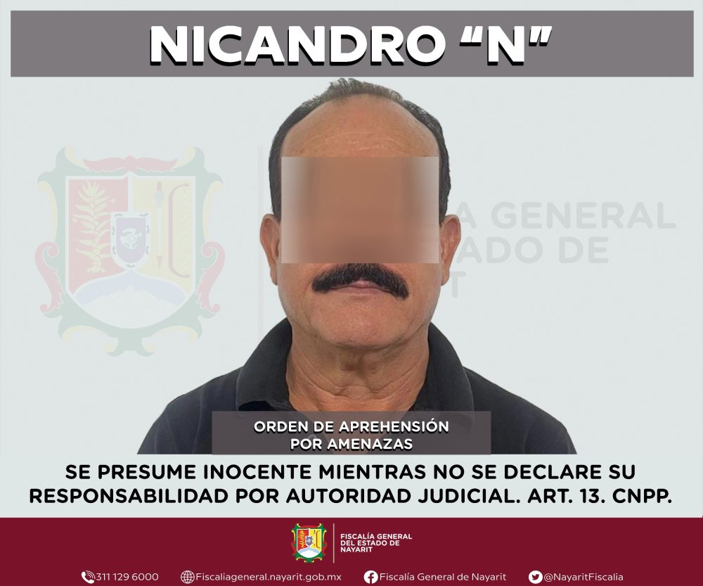 Elementos de la Agencia de Investigación Criminal de Nayarit ejecutaron una orden de aprehensión en la ciudad de Tepic contra Nicandro “N”, por su probable participación en hechos que la legislación vigente tipifica como delito de amenazas, cometido en agravio de una persona de sexo masculino cuya identidad se reserva en atención a su derecho a la privacidad e integridad.