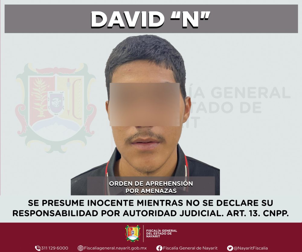 La Fiscalía General de Nayarit a través de la Agencia de Investigación Criminal ejecutó una orden de aprehensión en la localidad Francisco I. Madero, municipio de Tepic contra David “N”, por su probable participación en hechos que para la ley configuran el delito de amenazas, cometido contra una persona de sexo femenino cuya identidad se reserva para salvaguardar su privacidad e integridad.