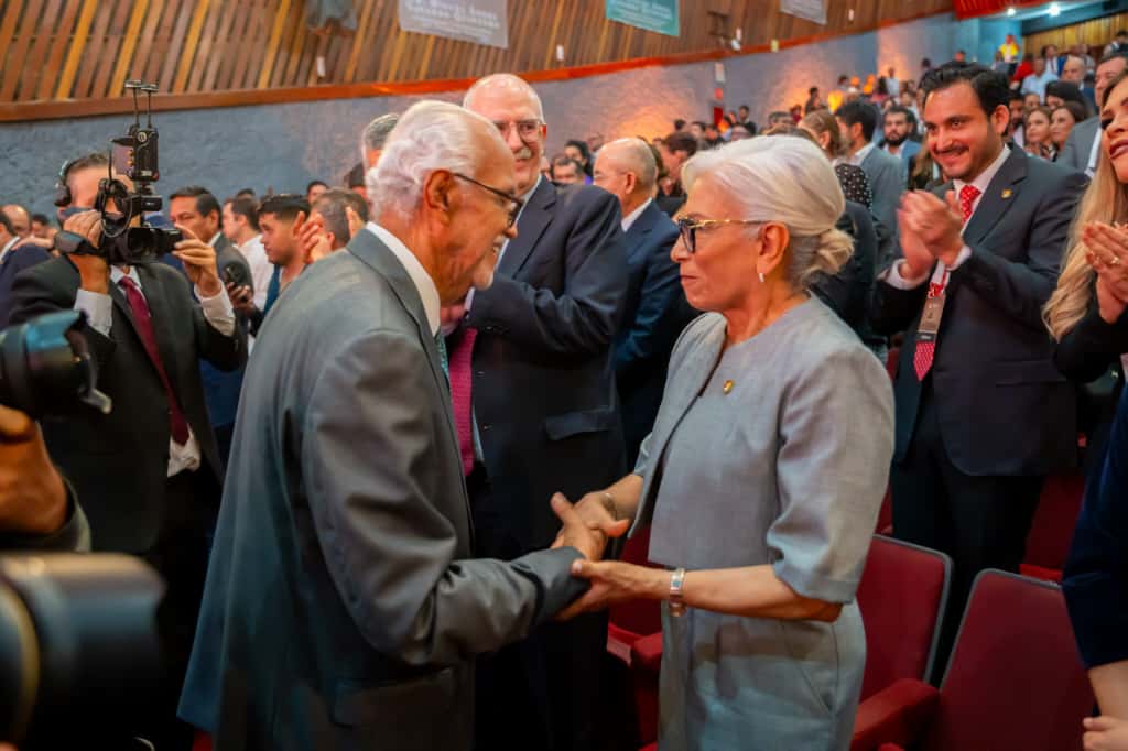 La presidenta del Sistema DIF Nayarit, doctora Beatriz Estrada Martínez, acompañó a su esposo, el gobernador del estado, Miguel Ángel Navarro Quintero, durante su Cuarto Informe de Gobierno, donde expresó su reconocimiento al trabajo firme, humano y visionario que el mandatario ha desempeñado al frente de la administración a lo largo de estos cuatro años.