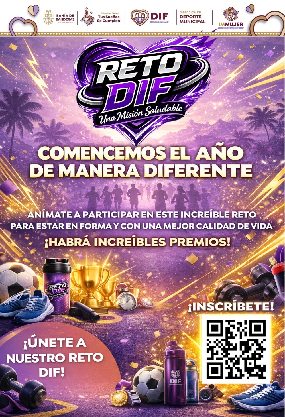 El Sistema DIF Bahía de Banderas, junto con nuestra querida presidenta del Sistema DIF, Lic. Margui Zuñiga de Santana, te invita a formar parte del Reto DIF: Una Misión Saludable 💪🌿