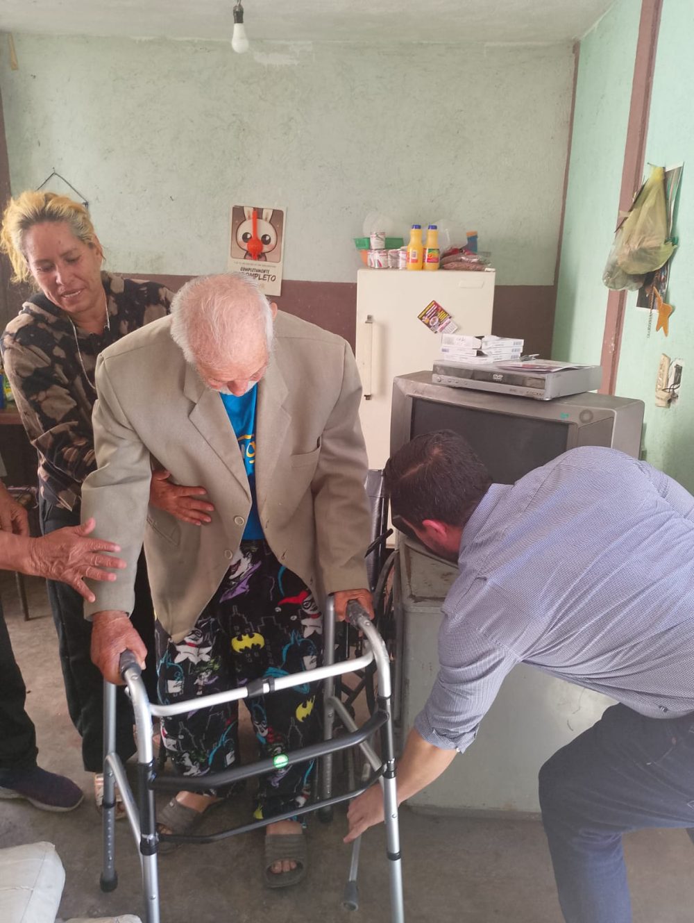 Gracias a la sensibilidad y compromiso de la doctora Beatriz Estrada Martínez, presidenta del Sistema DIF Nayarit, la institución brinda apoyo integral al señor José Sandoval Arellano, de 89 años de edad, quien recibió una silla de ruedas, una andadera y despensas; además, se le harán llegar pañales y otros apoyos que contribuyan a mejorar su calidad de vida.