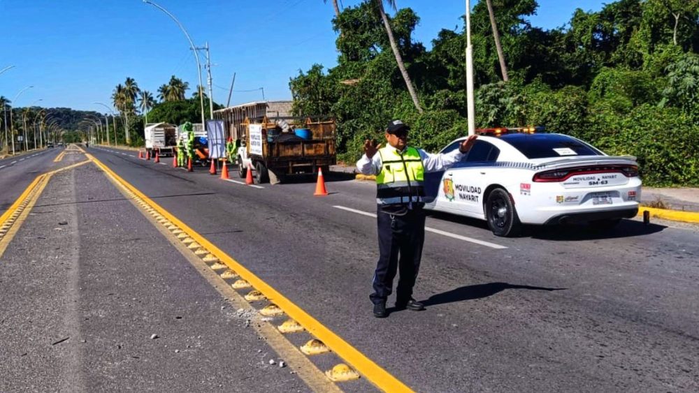 Tras el hundimiento registrado en el kilómetro 2+800 del bulevar Matanchén, agentes de movilidad del municipio de San Blas brindaron apoyo vial al personal de la SICT durante las labores de rehabilitación, garantizando la seguridad y mejorando la circulación de quienes transitan por esta zona.