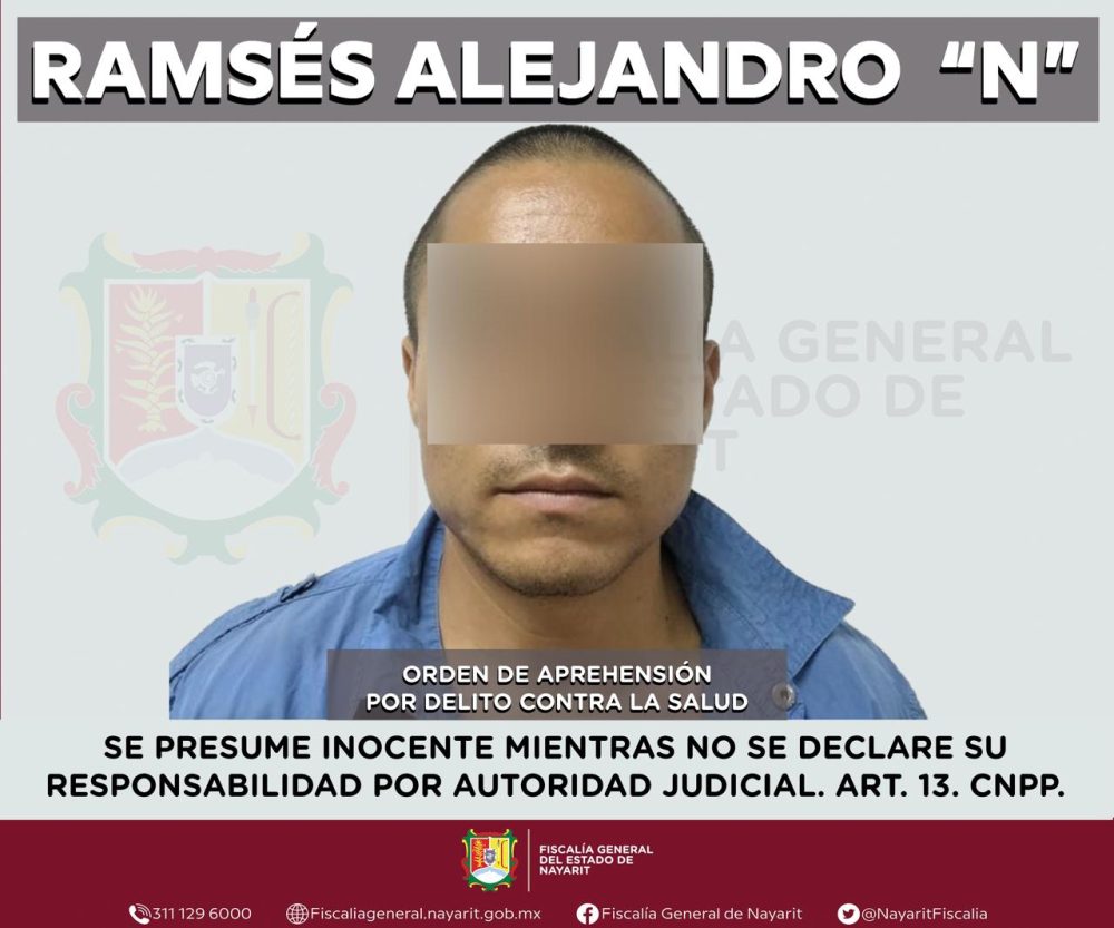 La Fiscalía General de Nayarit a través de la Agencia de Investigación Criminal ejecutó una orden de aprehensión contra Ramsés Alejandro “N”, por su probable participación en hechos que para la ley configuran el delito contra la salud en su modalidad de narcomenudeo -en su hipótesis de posesión de psicotrópicos-, cometido en agravio de la sociedad.